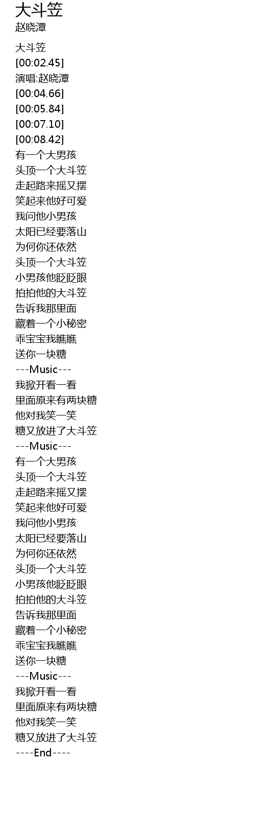 | [00:01.37] | 大斗笠 |