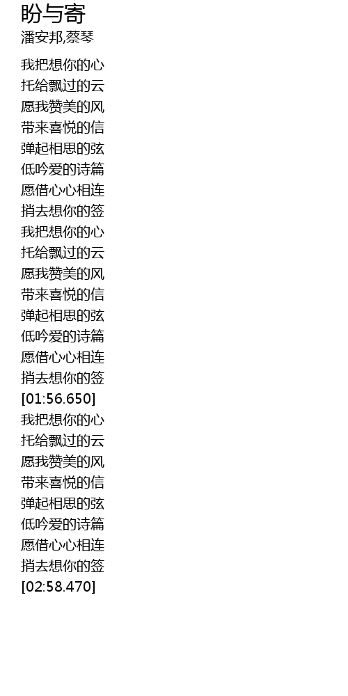 | [02:27.760] | dài lái xǐ yuè de xìn |