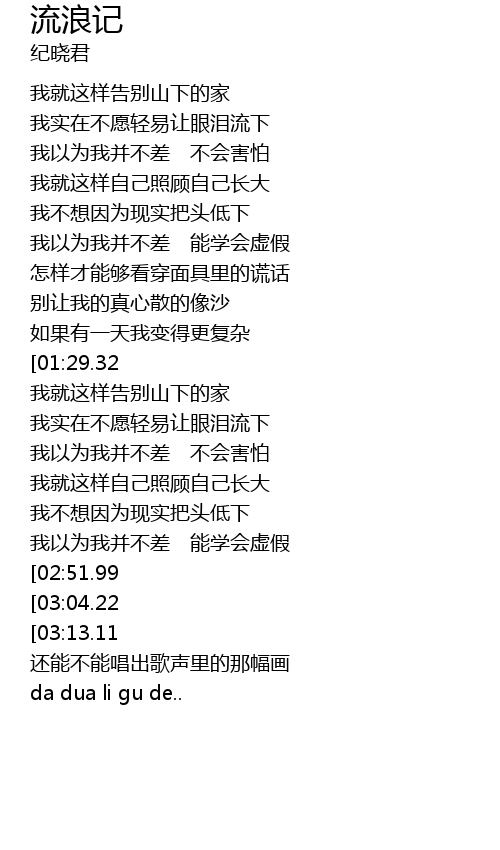 | [04:01.02][01:29.32] | 还能不能唱出歌声里的puy uma |