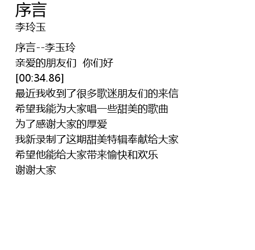 | [00:00.11] | 序言--李玉玲 |