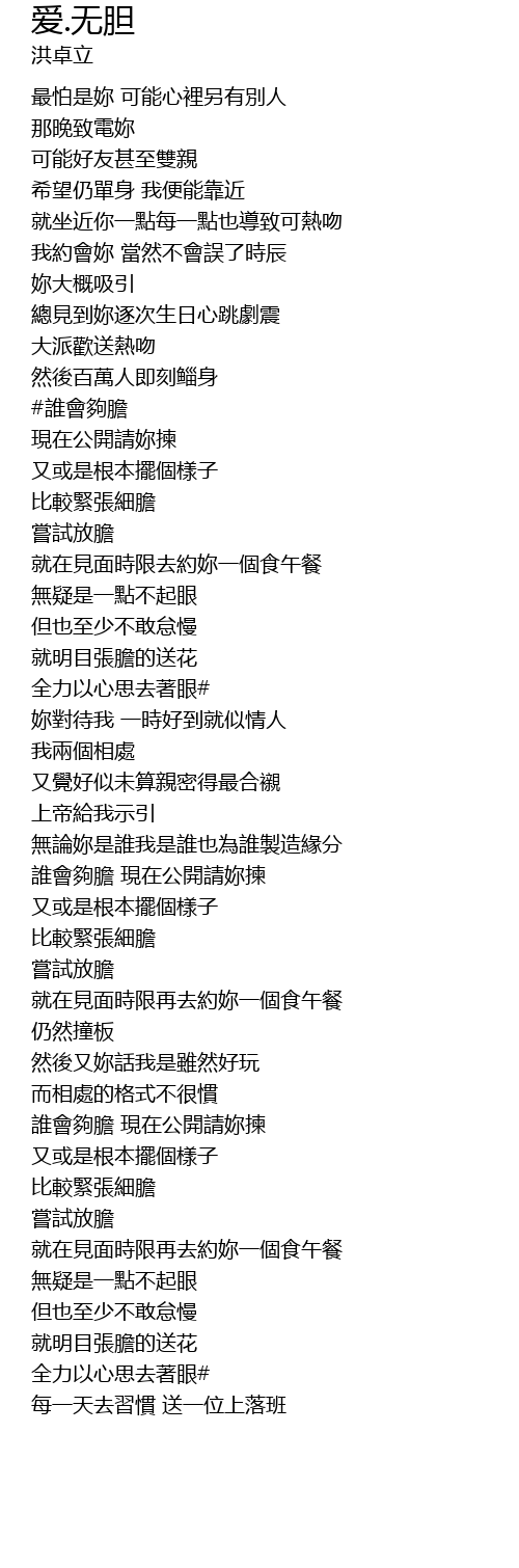 | [02:01.28] | 誰會夠膽 現在公開請妳揀 |