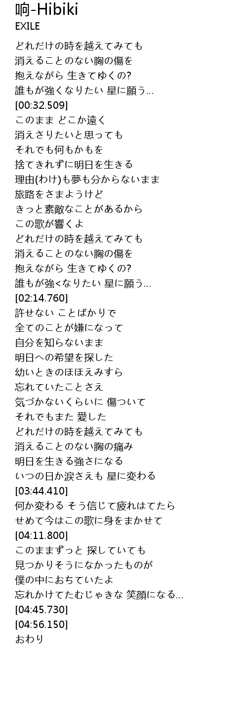 | [03:59.100] | せめて今はこの歌に身をまかせて |