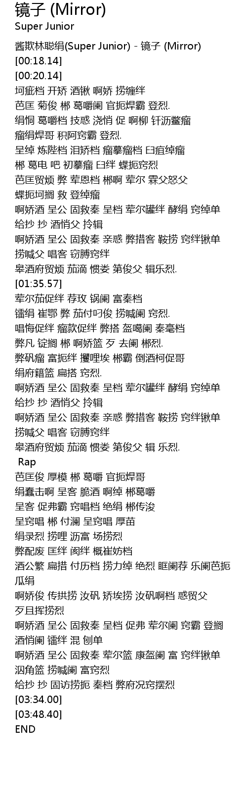 | [00:00.00] | 酱欺林聪绢(Super Junior) - 镜子 (Mirror) |