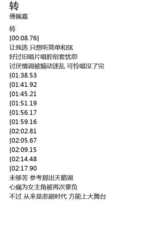 | [02:42.48][01:56.17][00:43.78] | 转不出快乐 仍在转 |