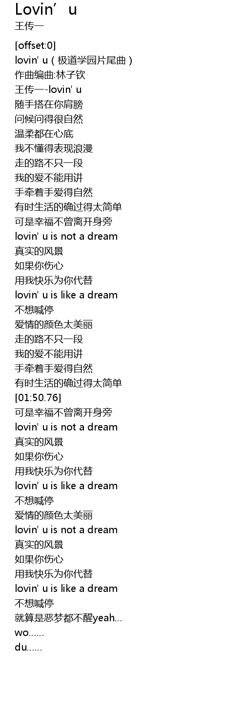 | [00:13.07] | 王传一-lovin' u |