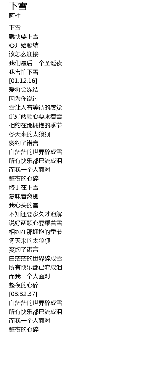 | [00:00.56] | 下雪 |