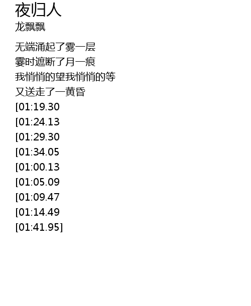 | [02:03.51][01:05.09] | 怕夜归人路也难问 |