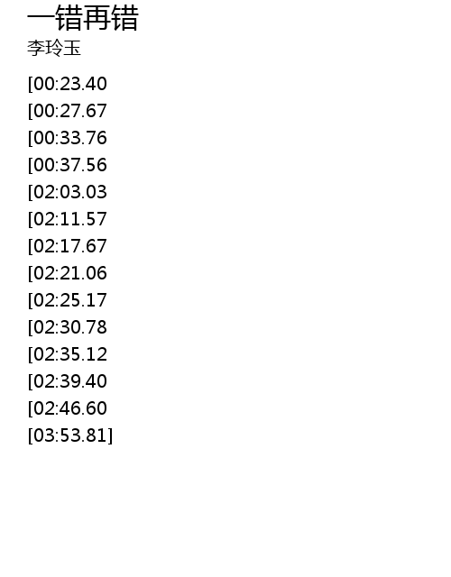 | [03:42.78][02:39.40][01:19.77] | wo que ning yuan yi cuo zai cuo |