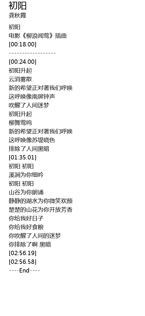 | [00:09.00] | 电影《柳浪闻莺》插曲 |