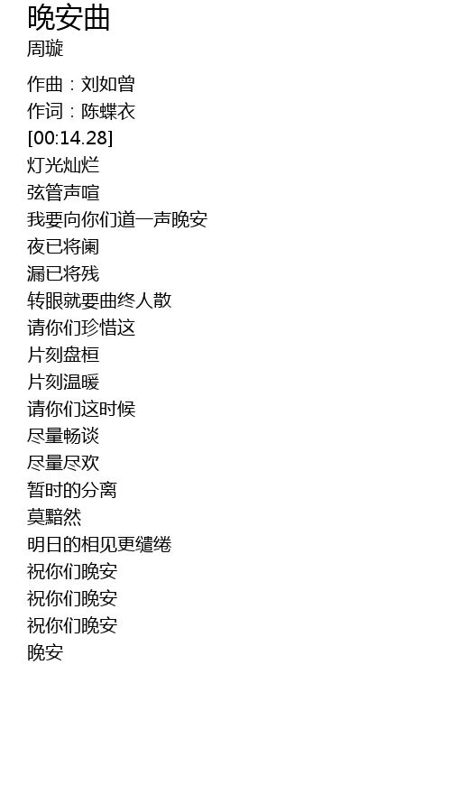 | [02:18.82] | zhù nǐ men wǎn ān |