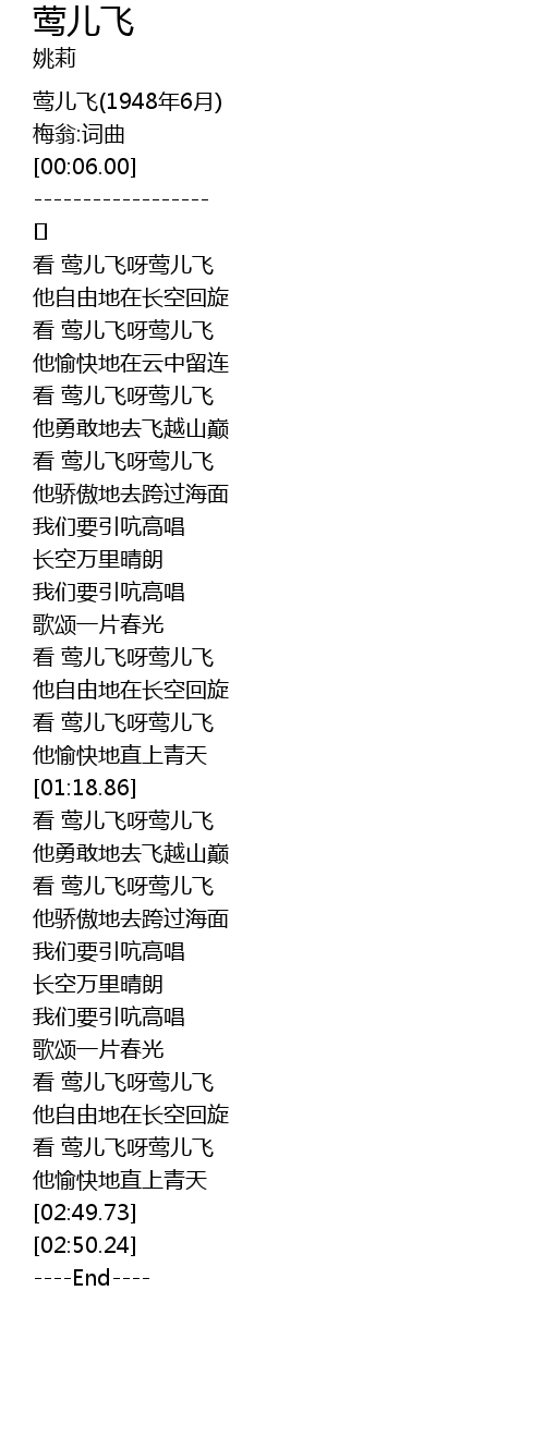 | [02:41.58] | 看 莺儿飞呀莺儿飞 |