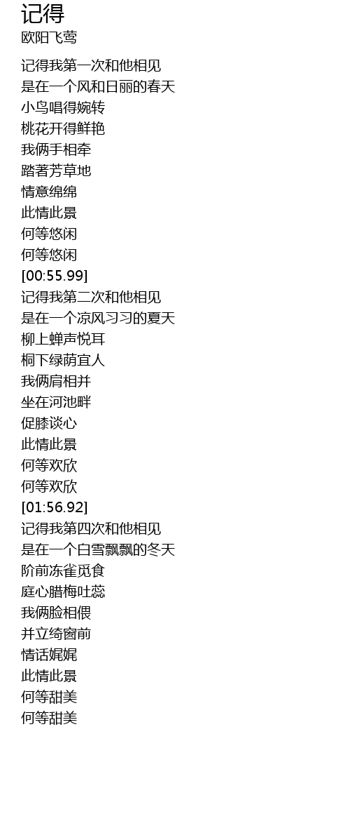 | [01:03.88] | jì de wǒ dì èr cì hé tā xiāng jiàn |