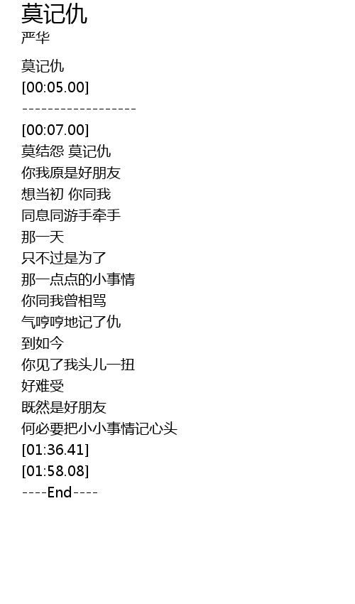 | [00:10.45] | mò jié yuàn mò jì chóu |