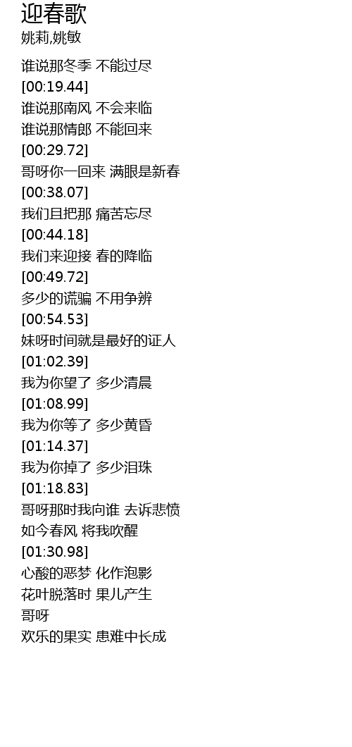 | [00:30.24] | ge ya ni yi hui lai man yan shi xin chun |