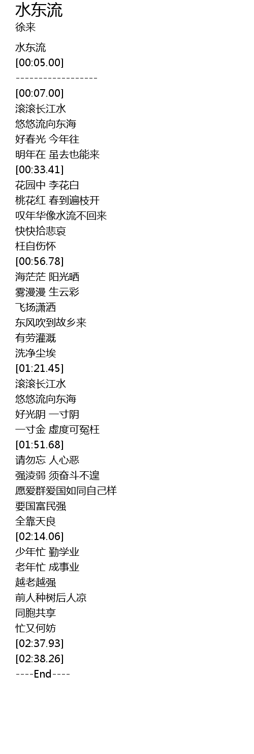 | [00:01.00] | 水东流 |