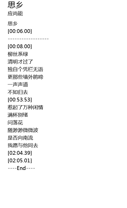 | [00:02.00] | 思乡 |