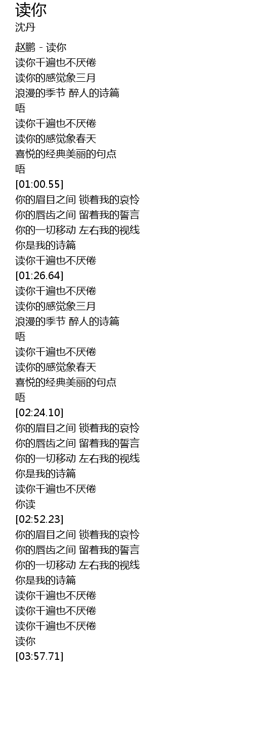 | [01:48.71] | dú nǐ qiān biàn yě bù yàn juàn |