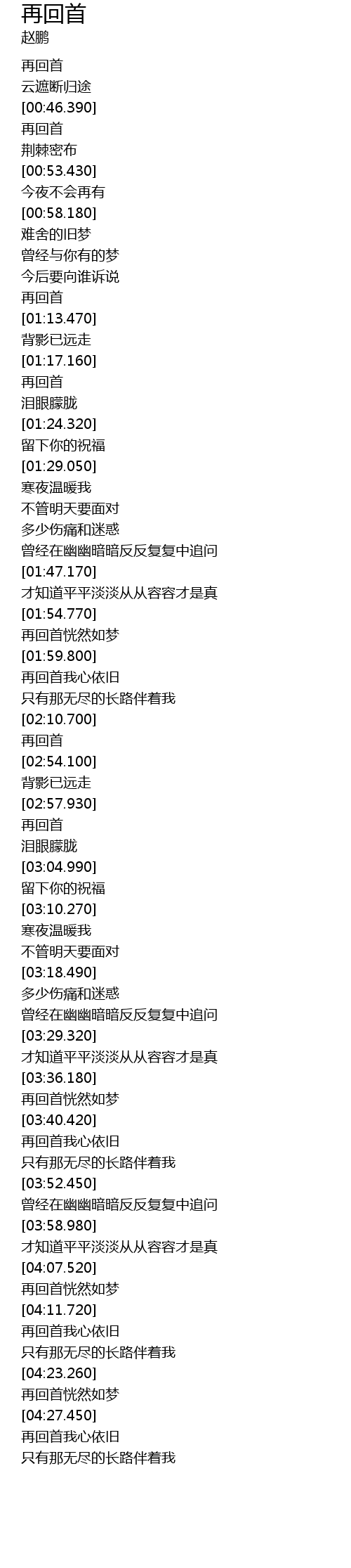 | [02:51.020] | 再回首 |