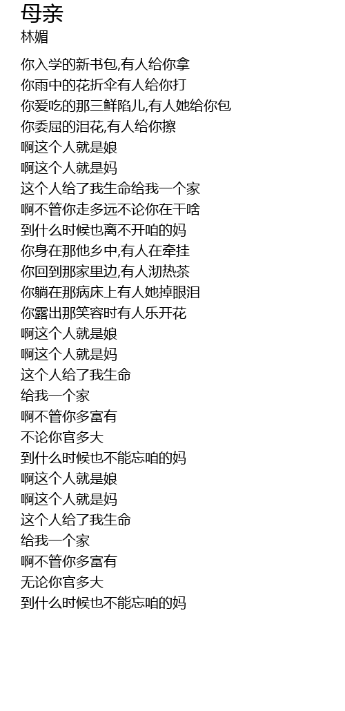 | Song | 母亲 |