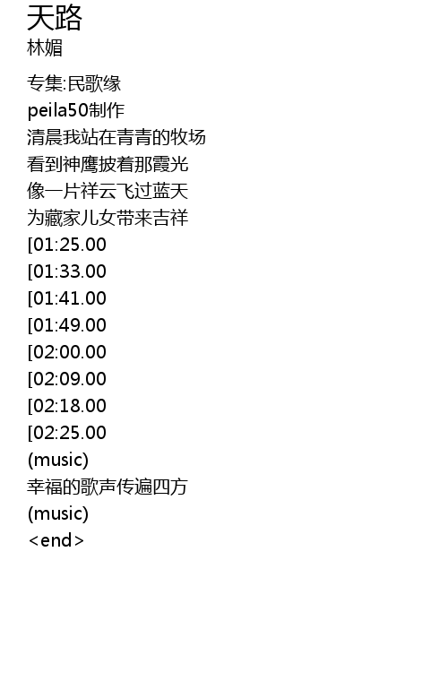 | [04:05.00][02:25.00] | 幸福的歌声传遍四方 |