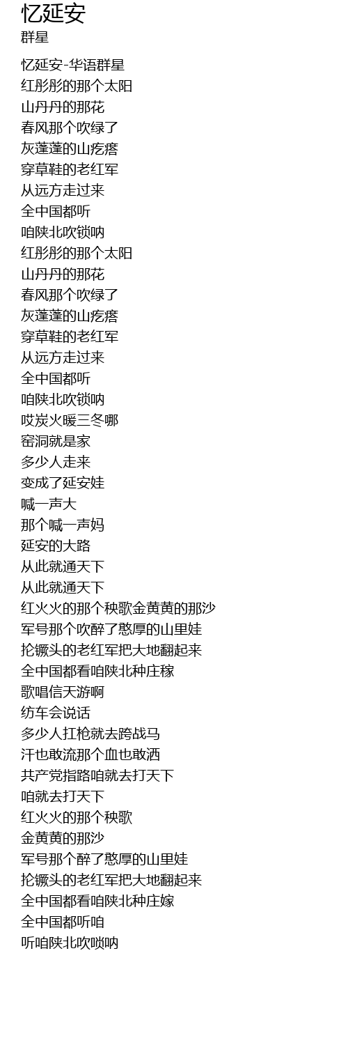 | [00:00.00] | 忆延安-华语群星 |