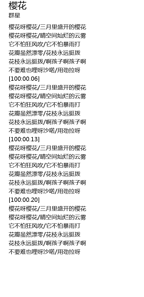 | [100:00.08] | 樱花呀樱花/睛空间灿烂的云雾 |