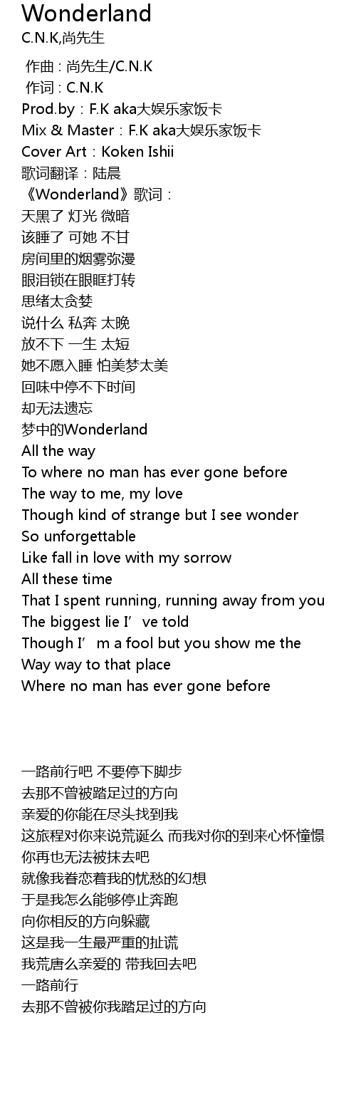 | [00:01.000] | 作词 : C.N.K |