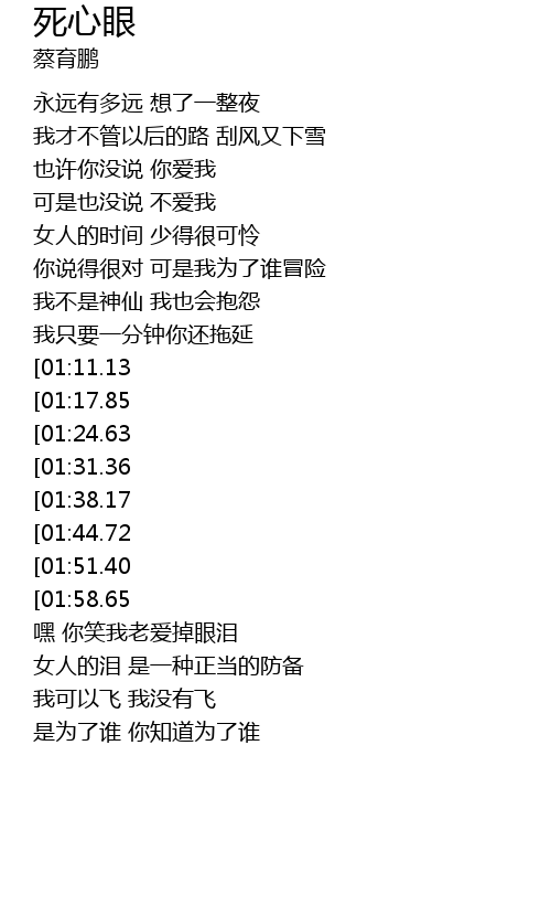 | [03:18.68][01:38.17] | 幸福蒙住我的眼睛 也让我死心眼 |