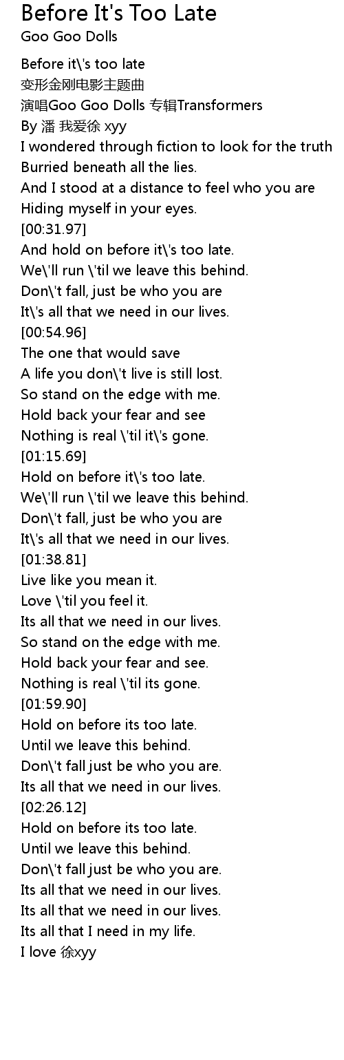 | [00:00.00] | Before it' s too late |