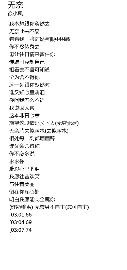 | Song | 无奈 |