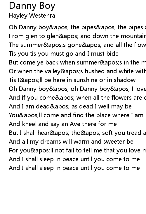 Oh Danny boy' oh Danny boy' I love you so |