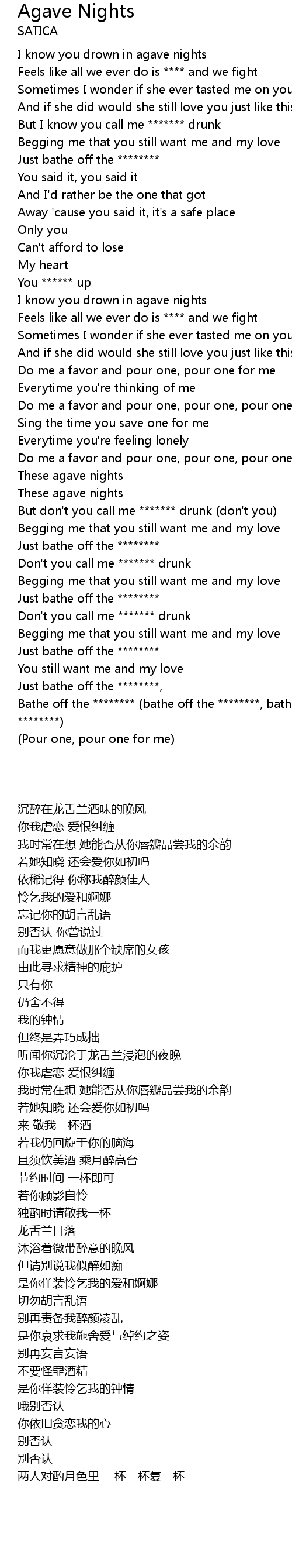 I know you drown in agave nights |