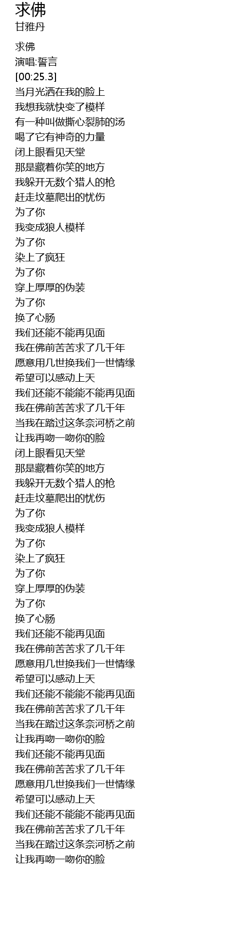 | [03:59.25] | 我在佛前苦苦求了几千年 |
