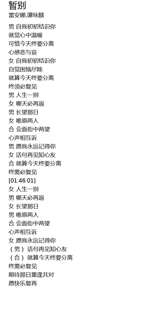 | [01:35.03] | hé jiù suàn jīn tiān zhōng yào fēn lí |