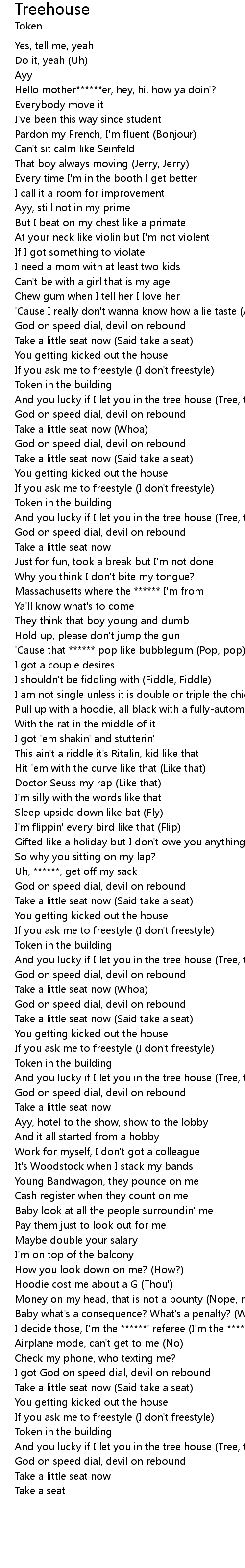 | [00:51.69] | And you lucky if I let you in the tree house (Tree, tree, tree, ayy) |