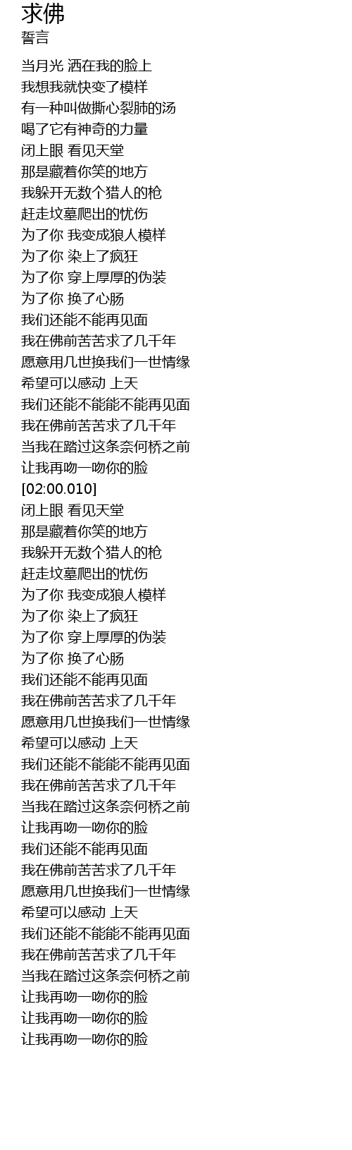 | [01:46.610] | 我在佛前苦苦求了几千年 |