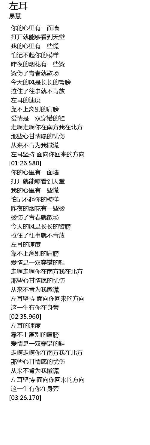 | [02:26.900] | 左耳坚持 面向你回来的方向 |