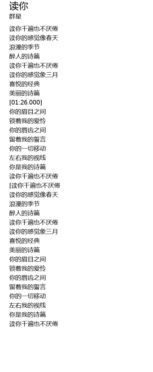 | [01:51.920] | 读你千遍也不厌倦 |