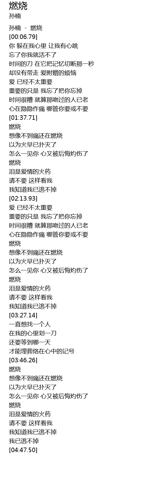 | [00:01.45] | 孙楠 - 燃烧 |