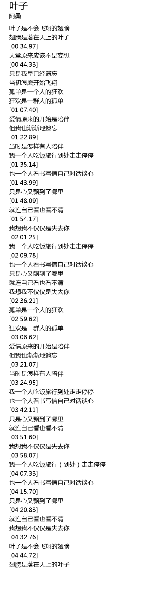 | [04:46.17] | 翅膀是落在天上的叶子 |