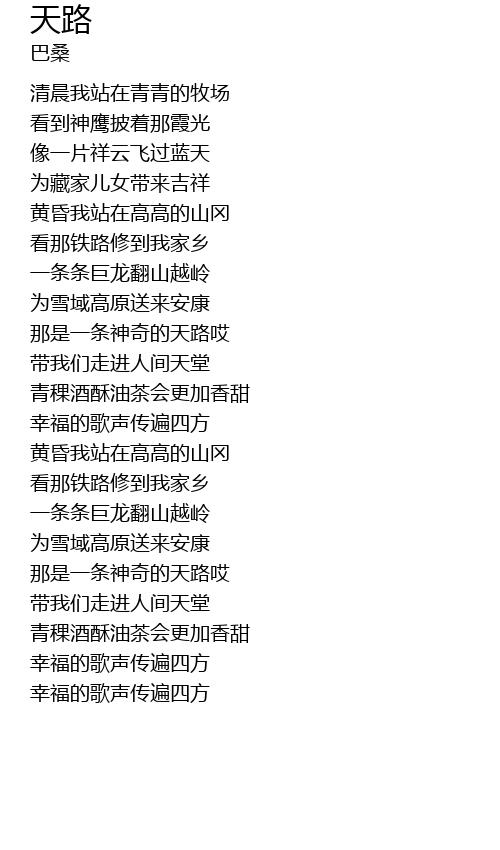 | [02:00.000] | 那是一条神奇的天路哎 |