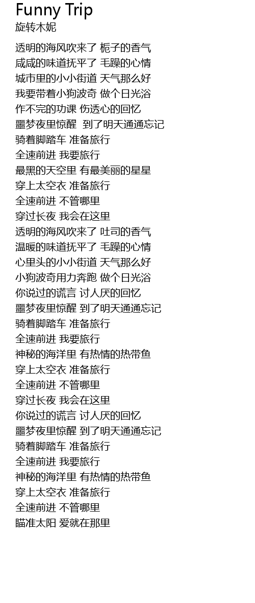 | [01:03.160] | 全速前进 我要旅行 |