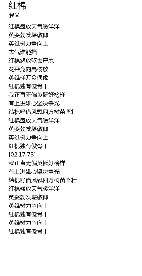 | [01:15.91] | 红棉独有傲骨干 |
