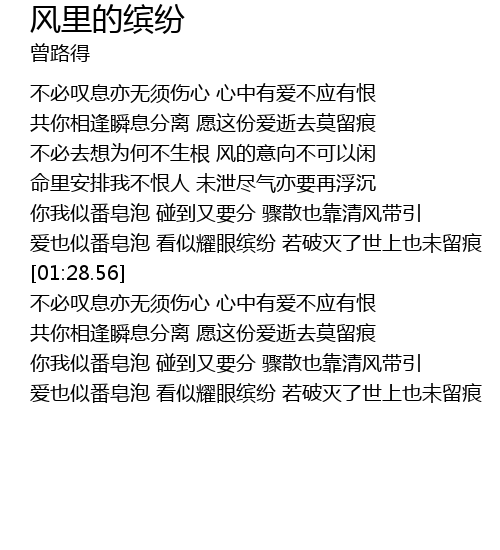 | [00:27.48] | 共你相逢瞬息分离 愿这份爱逝去莫留痕 |