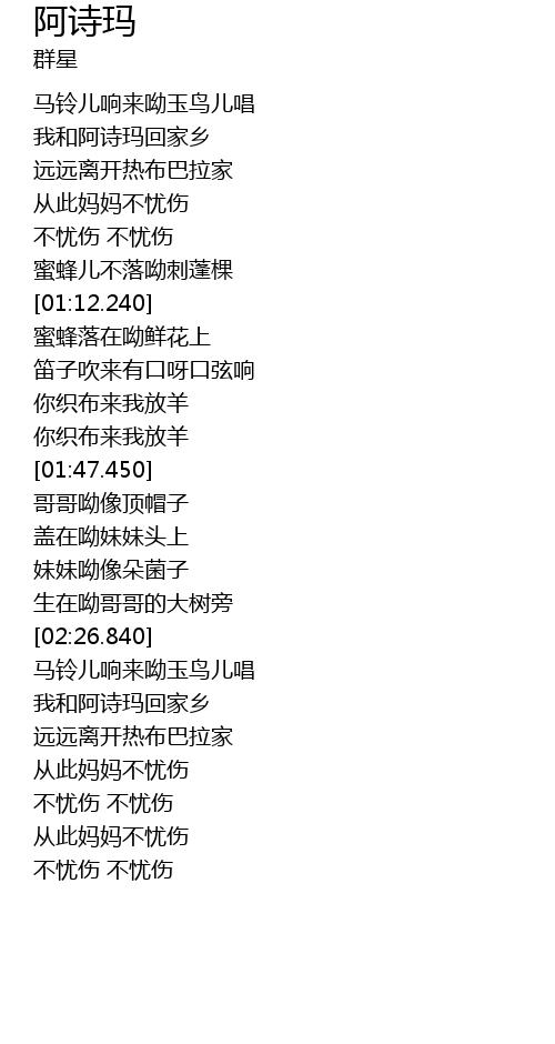 | [02:48.920] | 我和阿诗玛回家乡 |