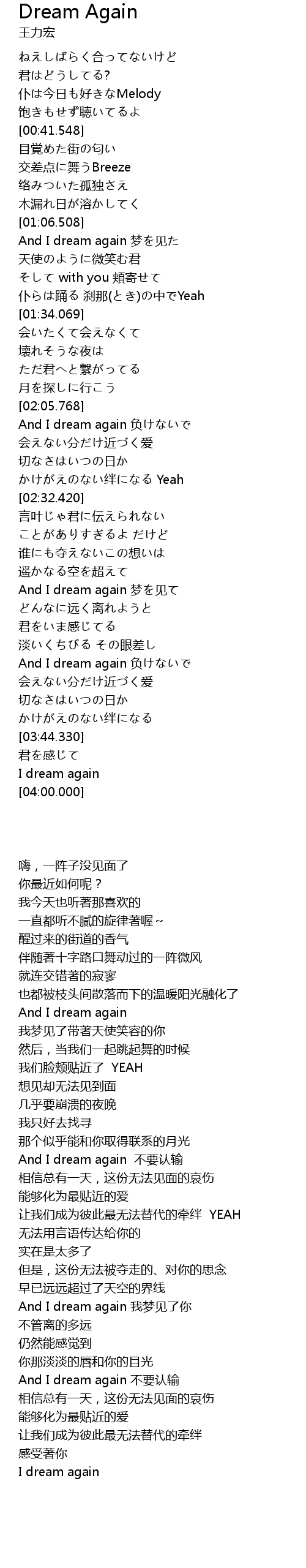 | [02:56.330] | And I dream again 梦を见て |