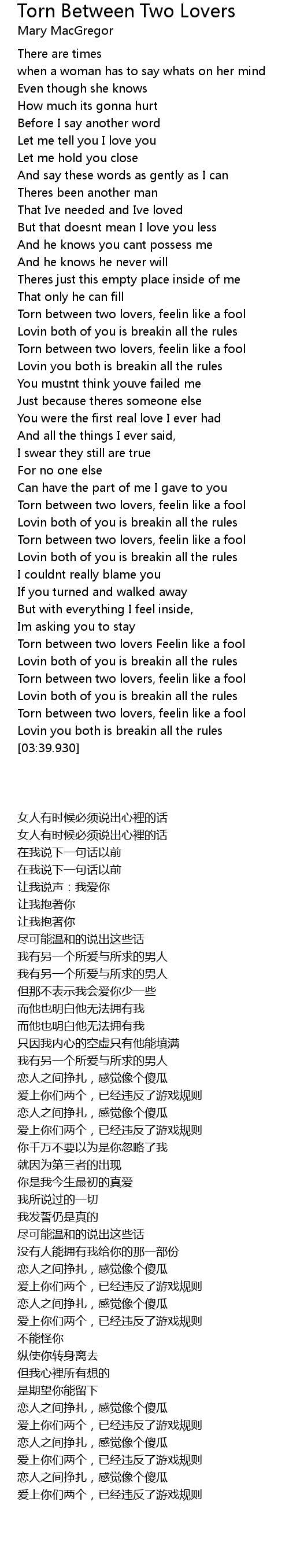 Torn between two lovers Feelin like a fool |
