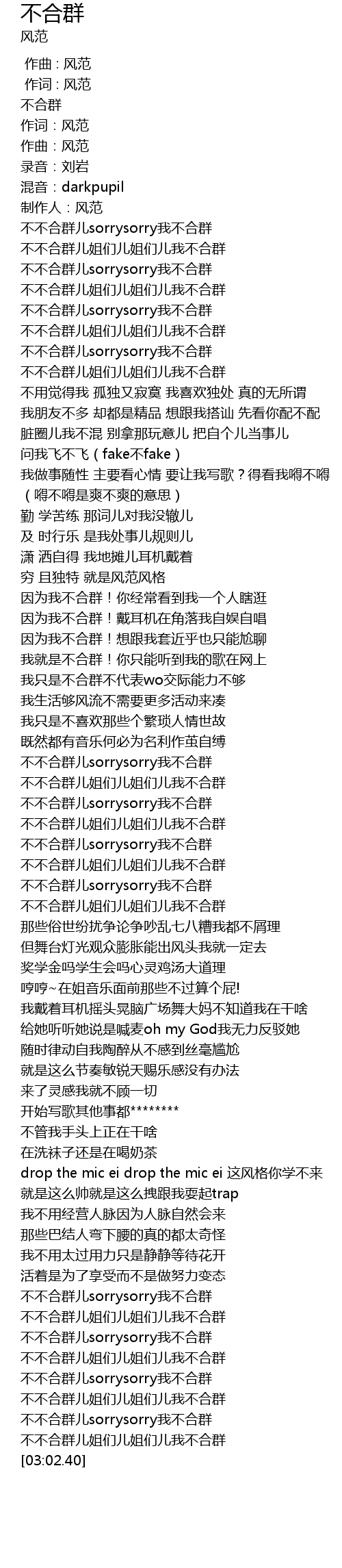 | [02:50.03] | 不不合群儿sorrysorry我不合群 |