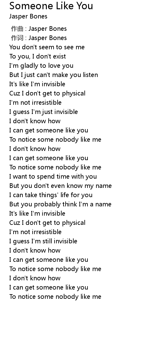 | [00:01.000] | 作词 : Jasper Bones |