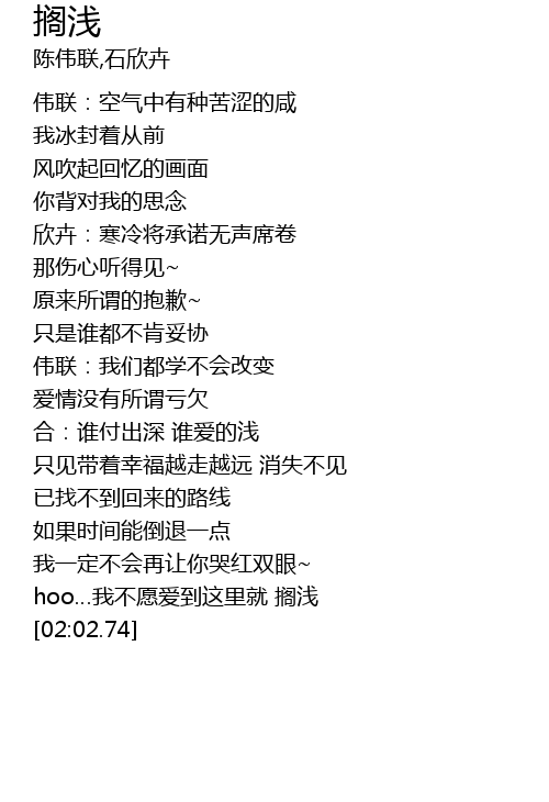 | [01:48.25] | hoo…我不愿爱到这里就 搁浅 |